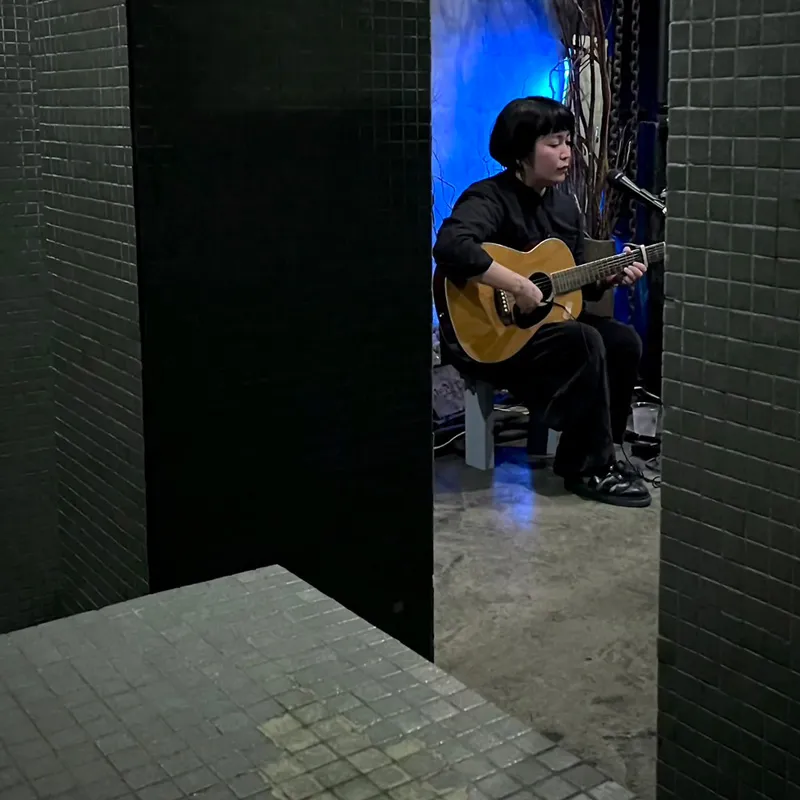 市川のひとり弾き語り。